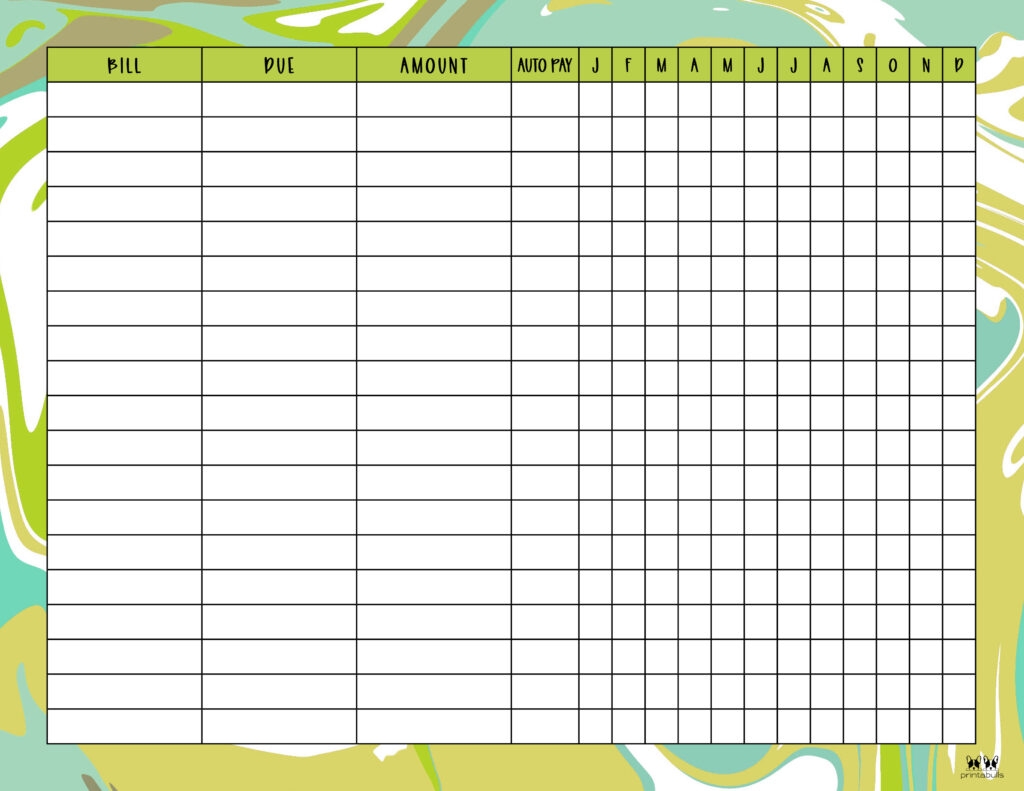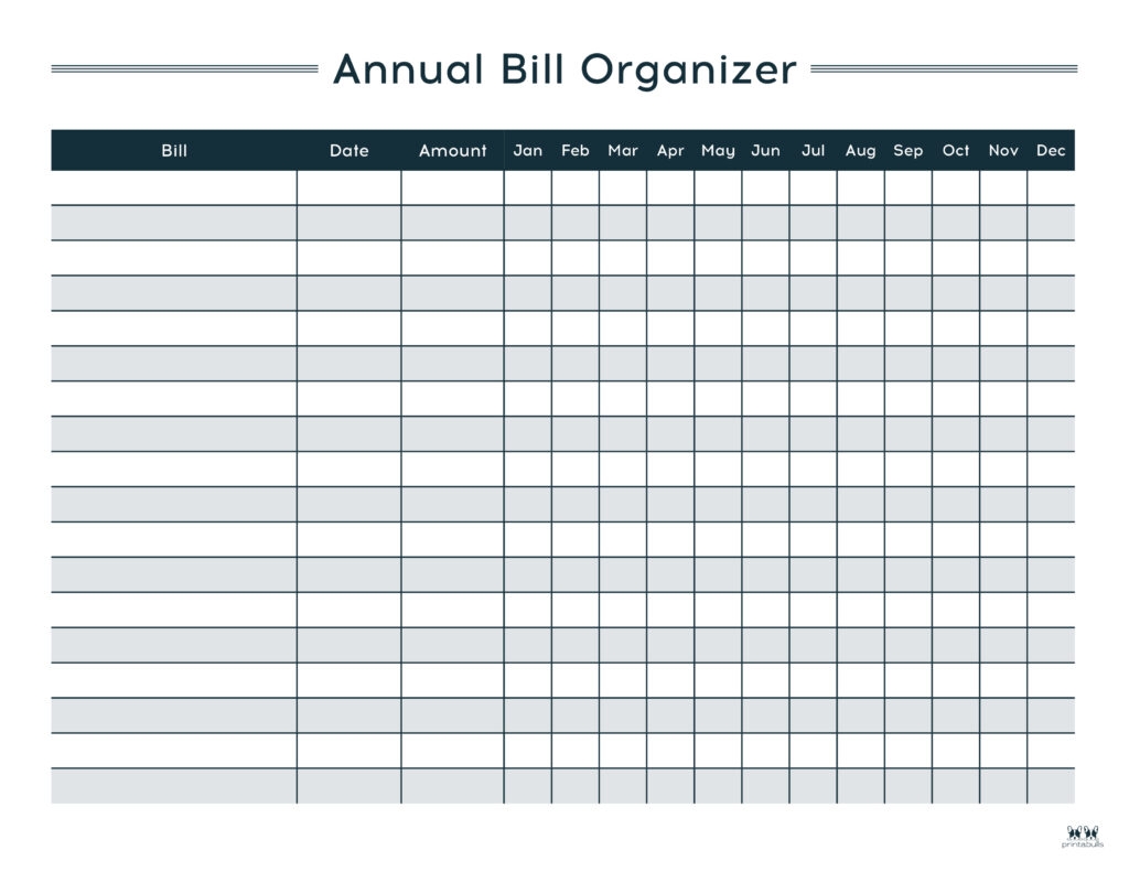 Having a visual representation of your bills for the year can help you budget more effectively and avoid any surprises. Our printable template includes sections for each month, so you can see at a glance which bills are due when.