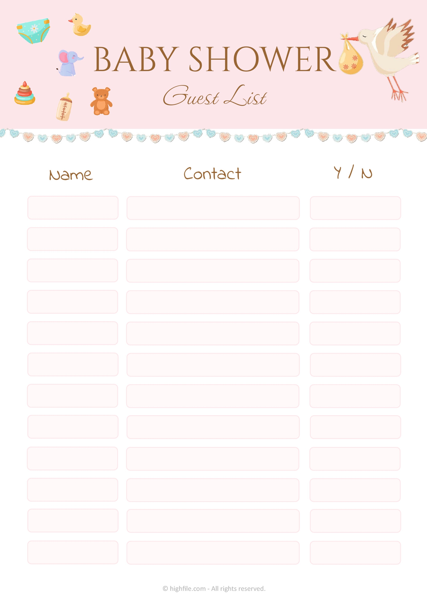 Our free printable baby shower guest list template is designed to make your life easier. Simply download the template, fill in the details of your guests, and check off their RSVP status as they respond.