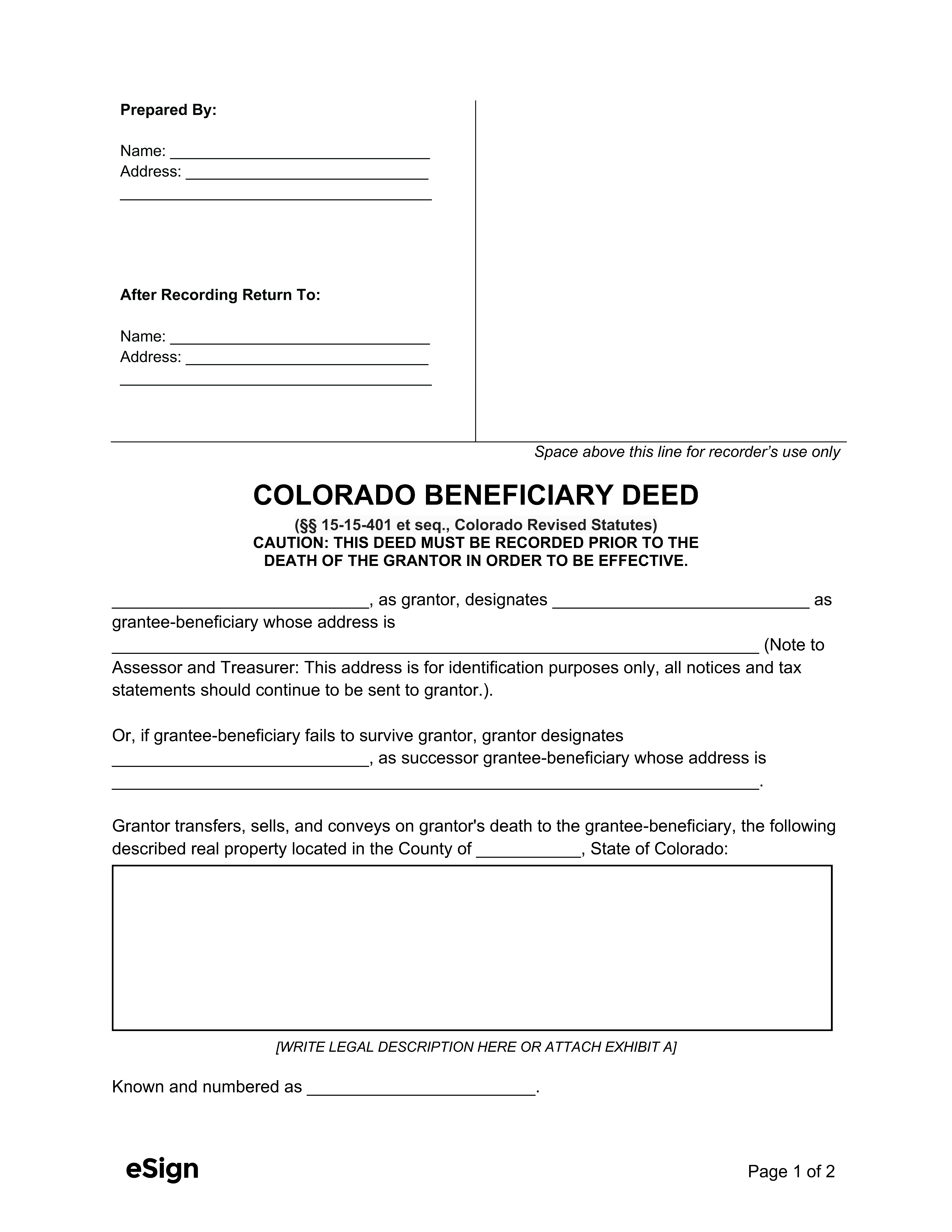 Our free printable beneficiary deed templates for Colorado are easy to use and legally binding. Simply fill in the required information, sign the document in front of a notary, and you’re all set!