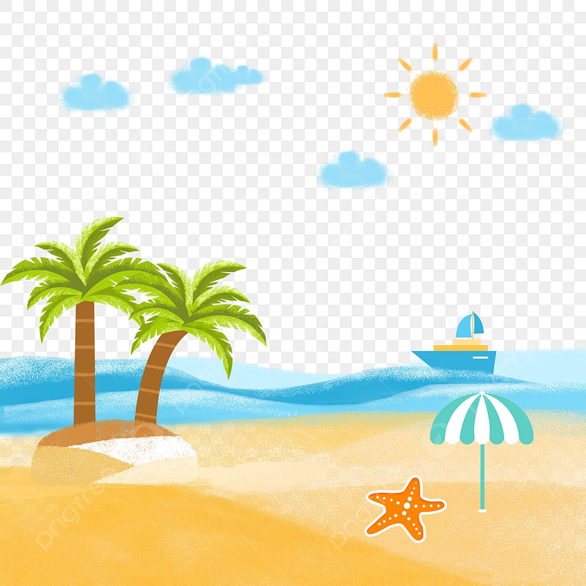 Summer Beach Scene Clipart Vector Summer Beach Cartoon Beach Beach Clipart Summer Day Summer Beach Hand Drawn PNG Image For Free Download