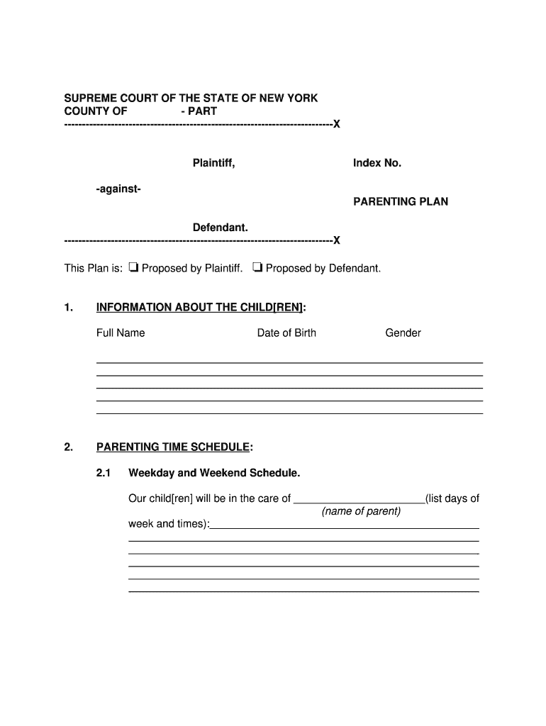 Ny Parenting Plan Fill Online Printable Fillable Blank PdfFiller