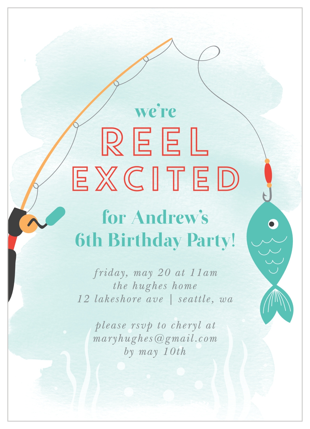 From cute cartoon fish to rustic fishing-themed backgrounds, our collection has something for every angler in training. You can also personalize the invitations with your child’s name, age, party date, time, and location to make them truly one-of-a-kind. Your guests will be hooked from the moment they receive their invite.