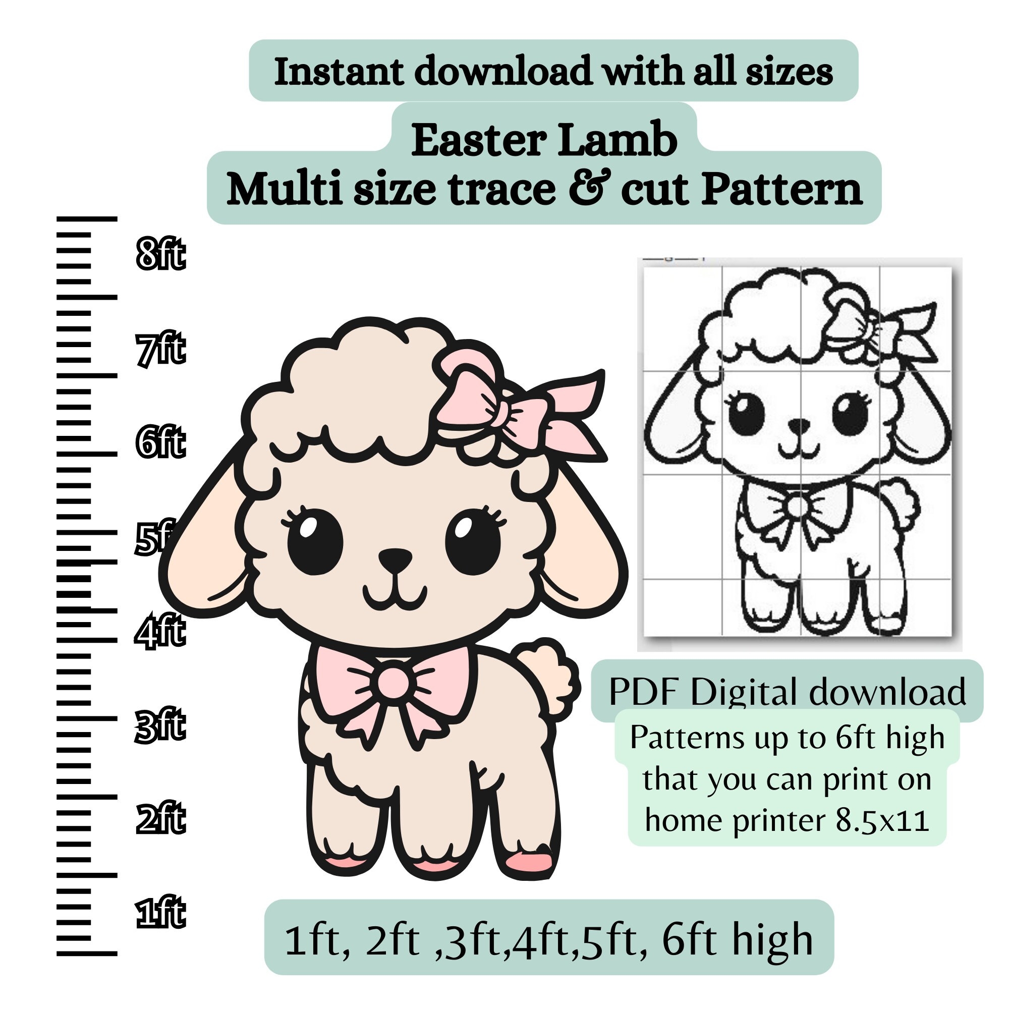 1ft 2ft 3ft 4ft 5ft Life Size Easter Lamb PDF Template printable Trace And Cut Easter Sign Stencil Sheep Pattern Wood Cutout Woodworking Etsy
