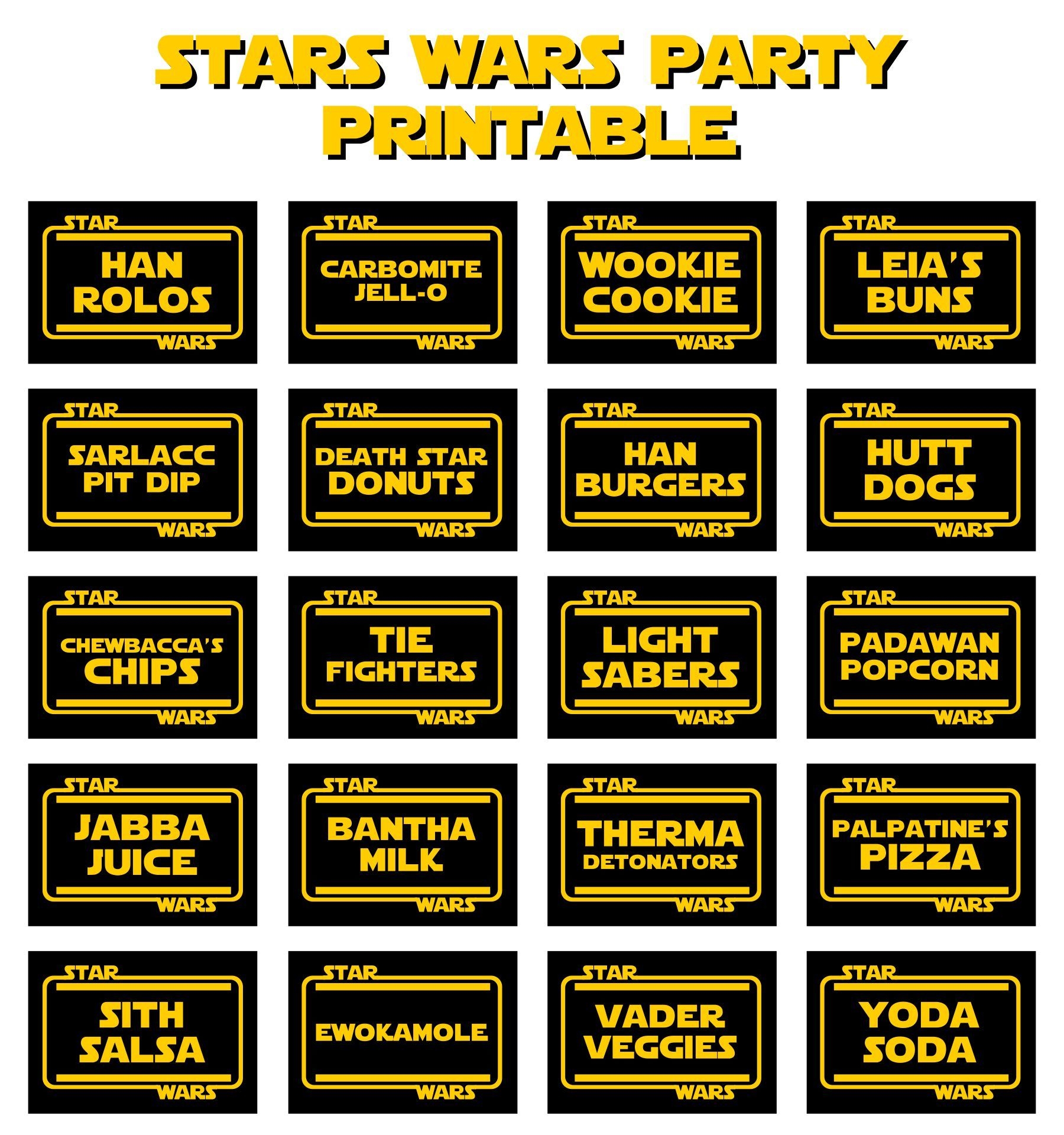 Star Wars Party Food Labels Template Printable Birthday Party Decoration