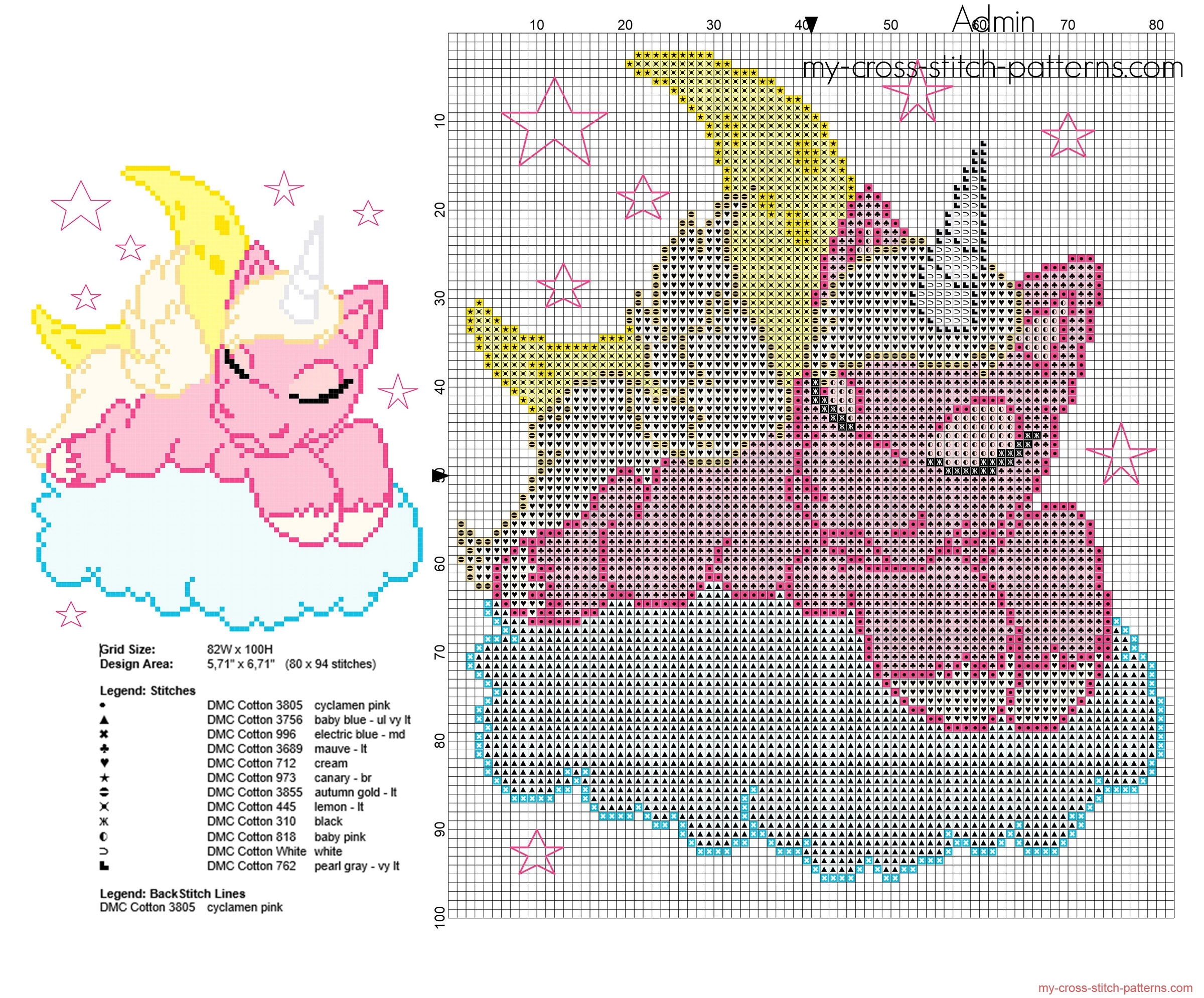 Unicorn Sleeping On The Clouds Free Cross Stitch Pattern Free Cross Stitch Patterns Simple Unique Alphabets Baby