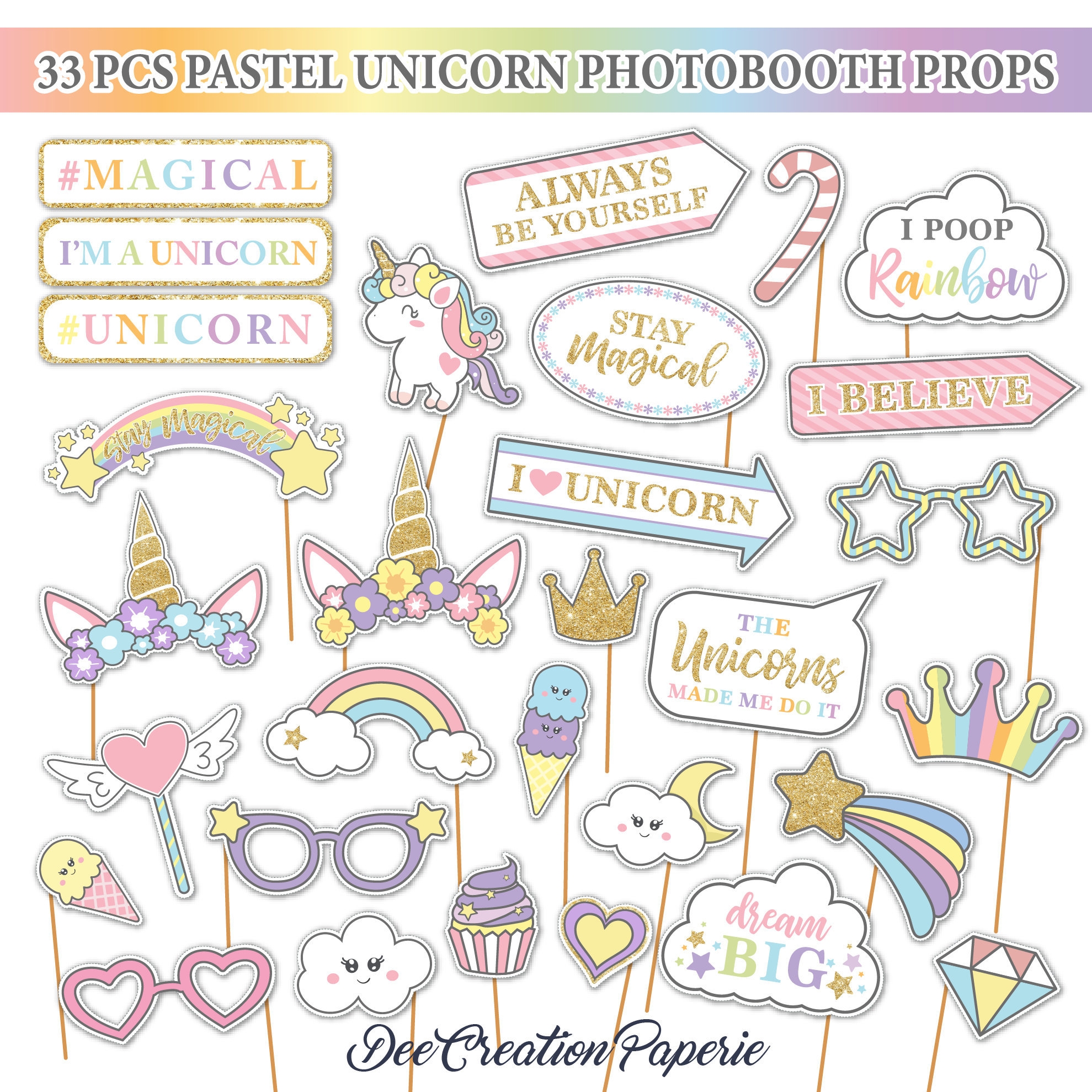 From unicorn horns and rainbow-colored wigs to magical wands and fairy wings, these free printable photo booth props have everything you need to transport yourself to a fantastical world of rainbows and sparkles. Let your imagination run wild as you mix and match the props to create your own unique unicorn look.