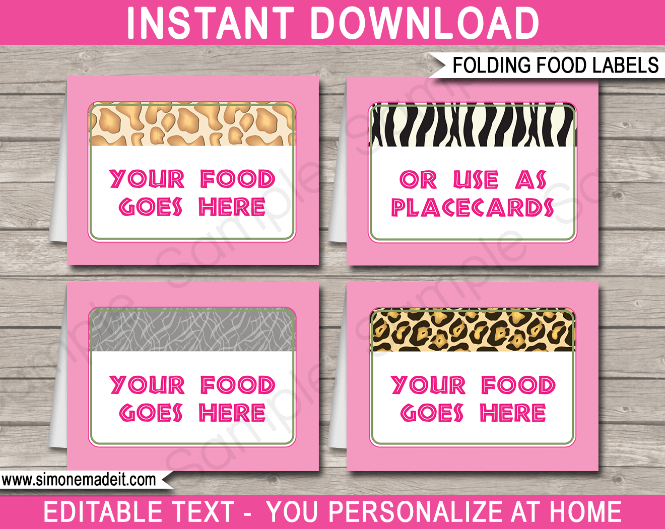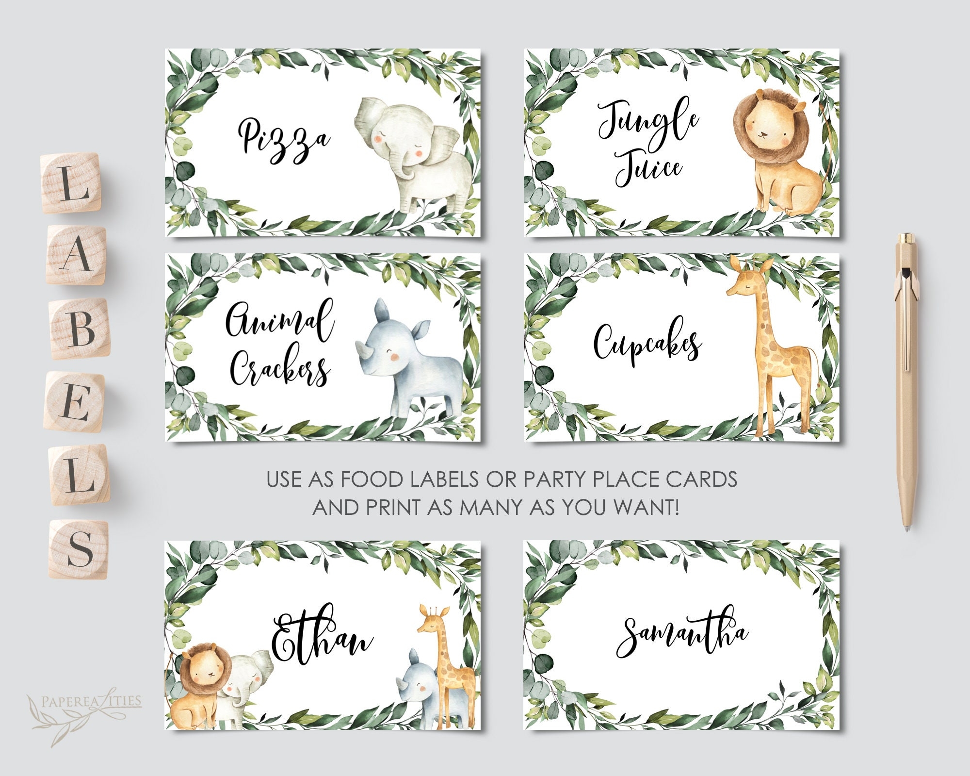Safari Party Food Labels Template Place Cards Zoo Theme Decorations