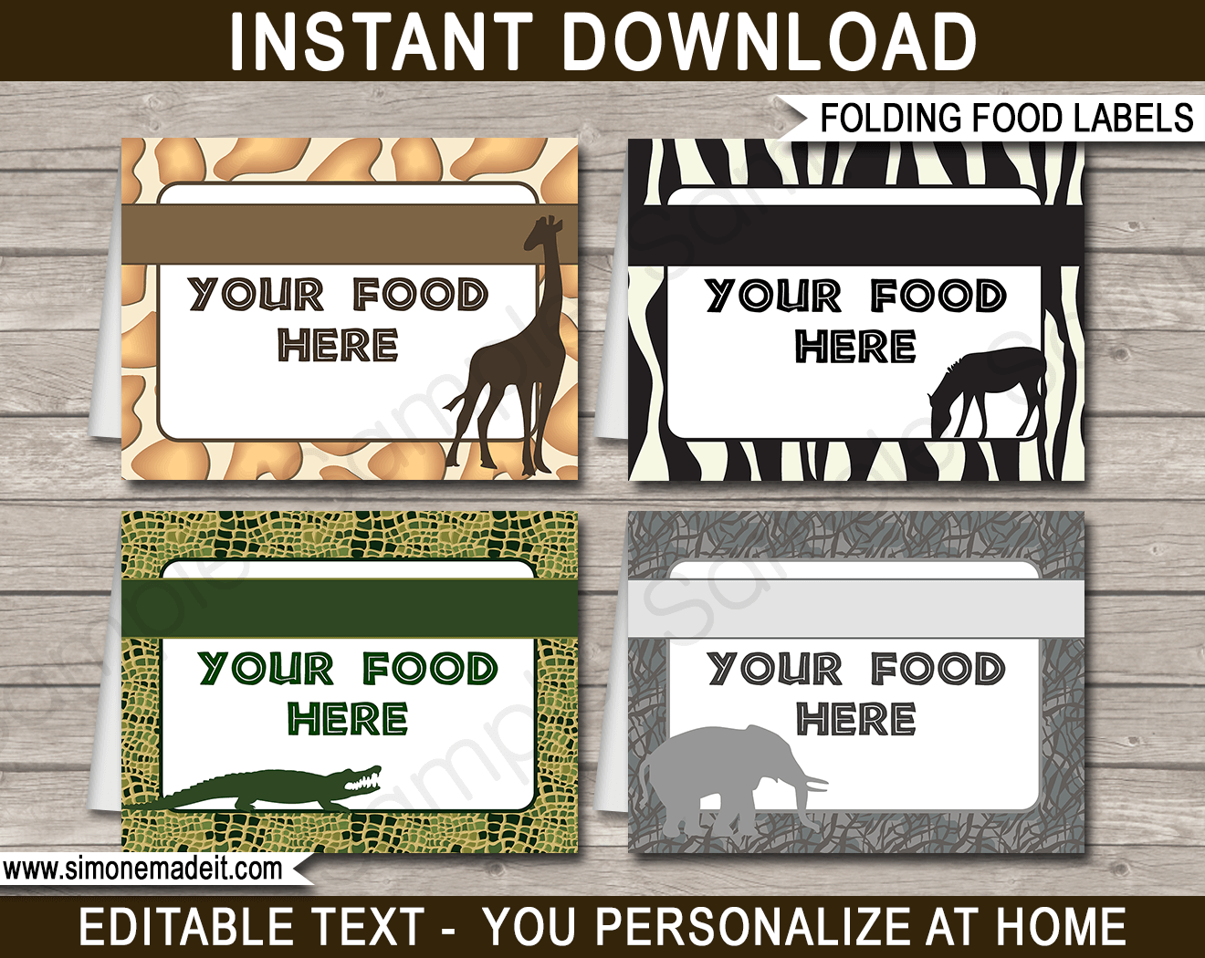 Safari Baby Shower Food Label Template Jungle Safari Food Label Editable Buffet Labels Tent Card Food Labels Safari Party Place Cards Etsy