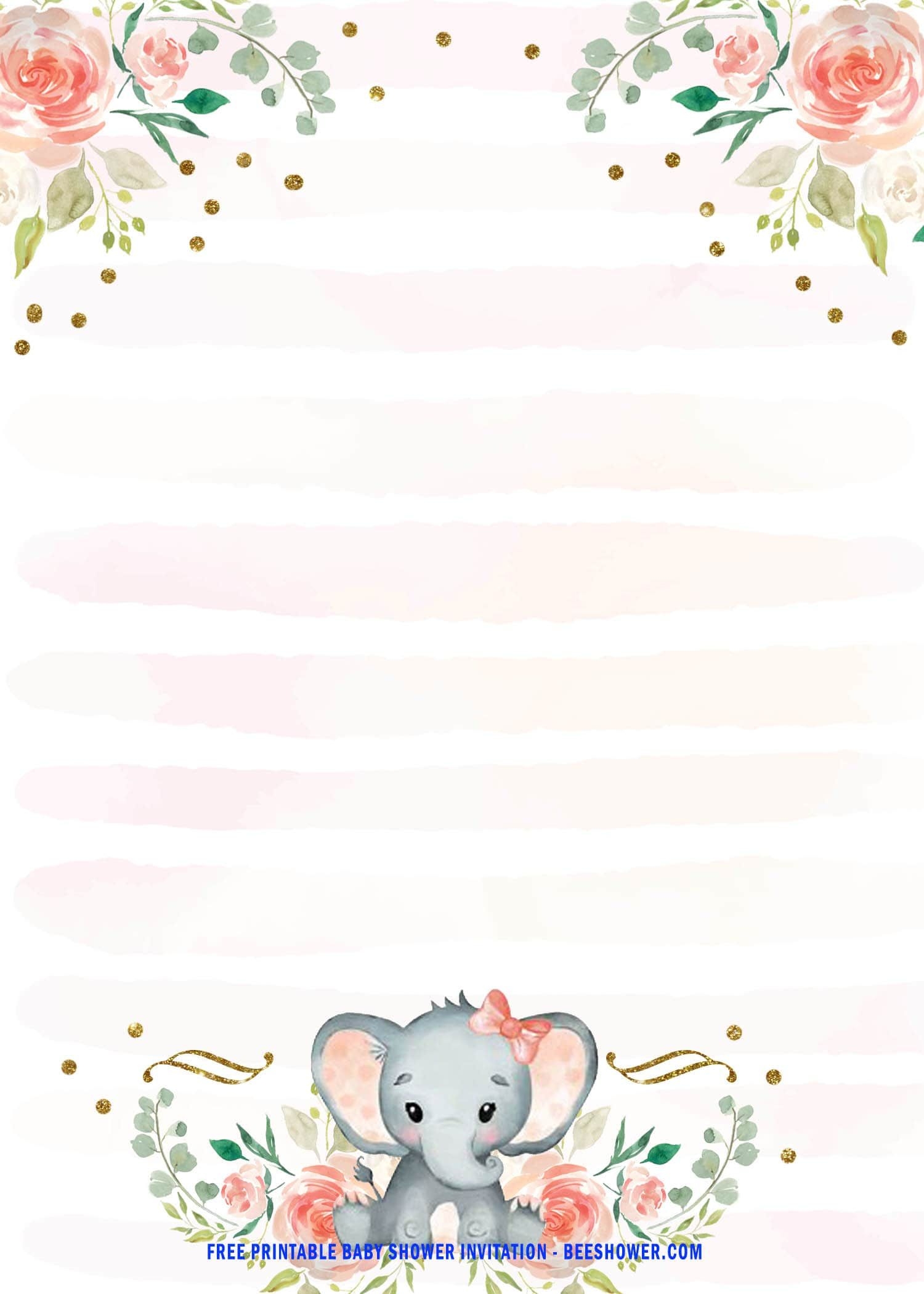 FREE Printable Pink Baby Elephant Baby Shower Invitation Templates